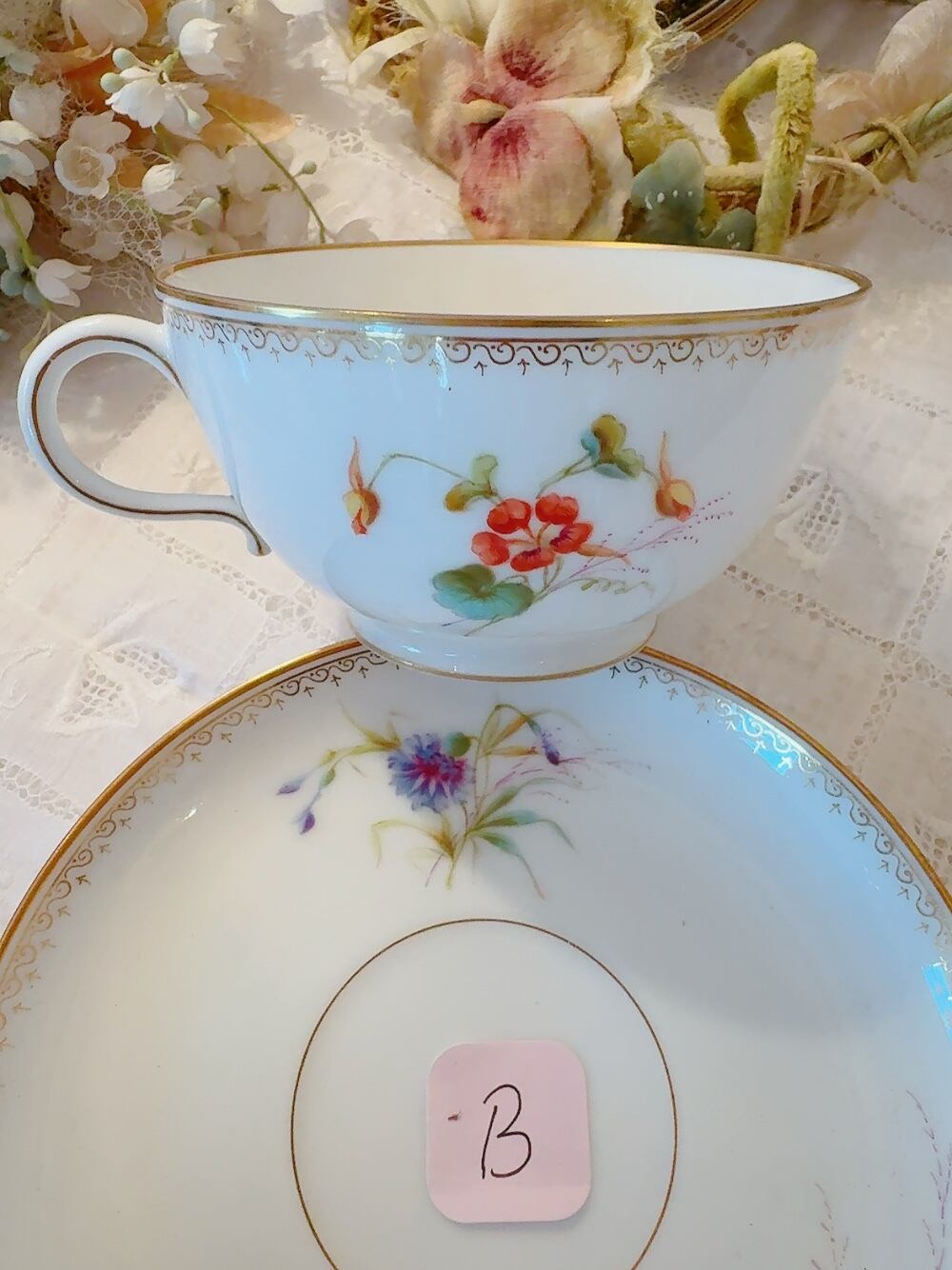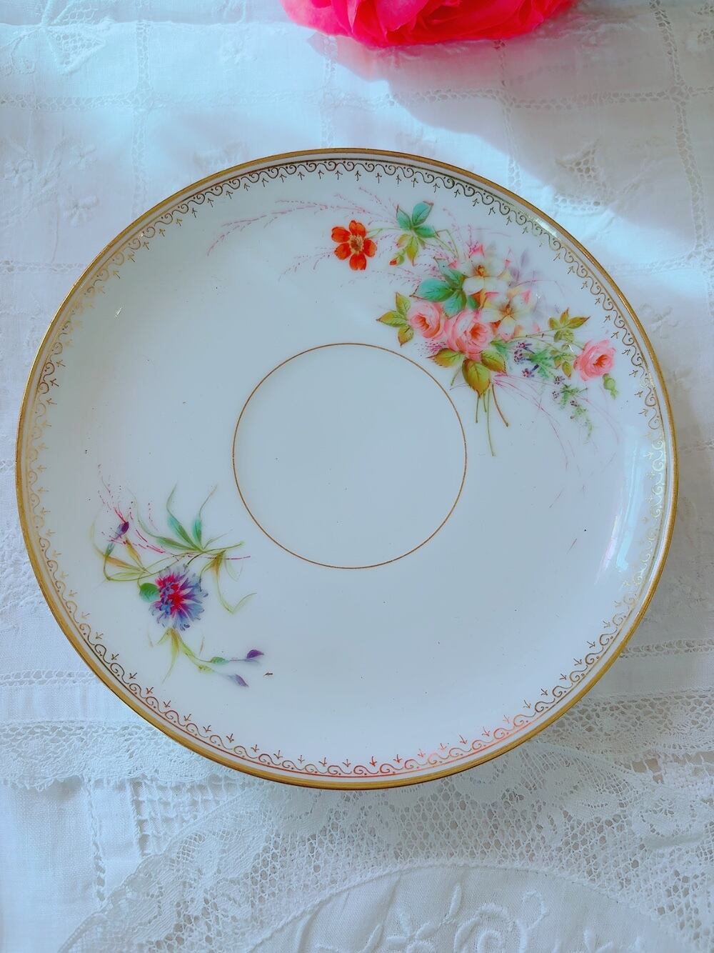 こちらはカップとソーサーにふんだんに花々が絵画のように描かれています。
