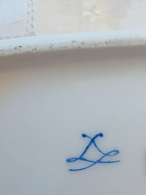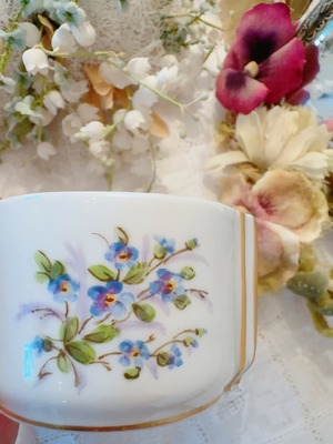 側面にも薔薇やパープルの小花やブルーの小花が手描きで描かれている凝ったお品になります。