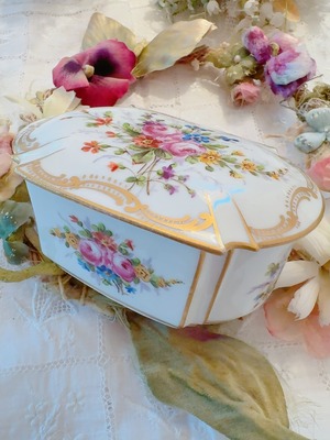 フランス リモージュ花々模様が可愛い小物入れのご紹介です。