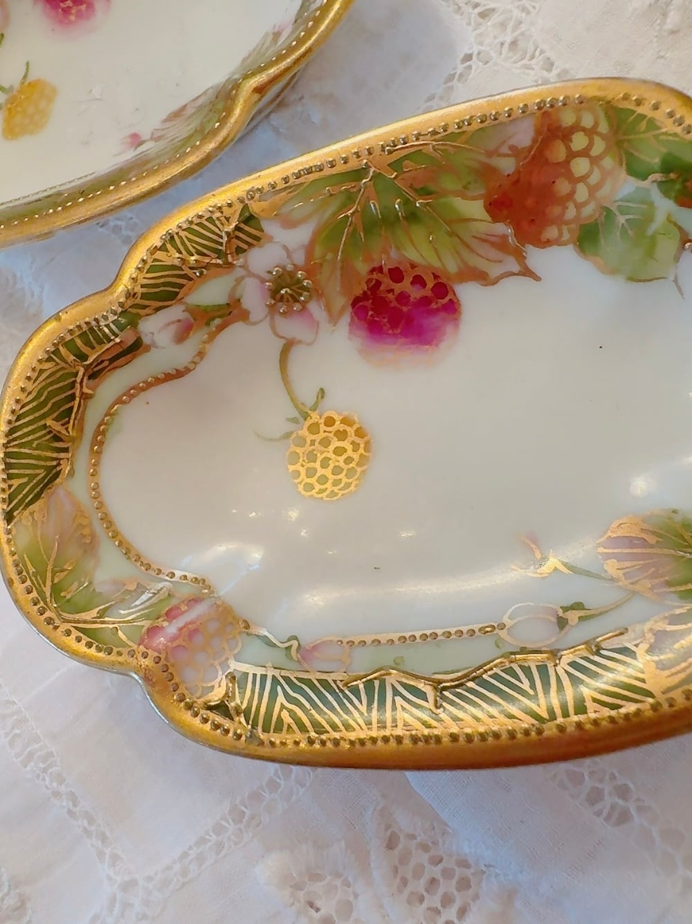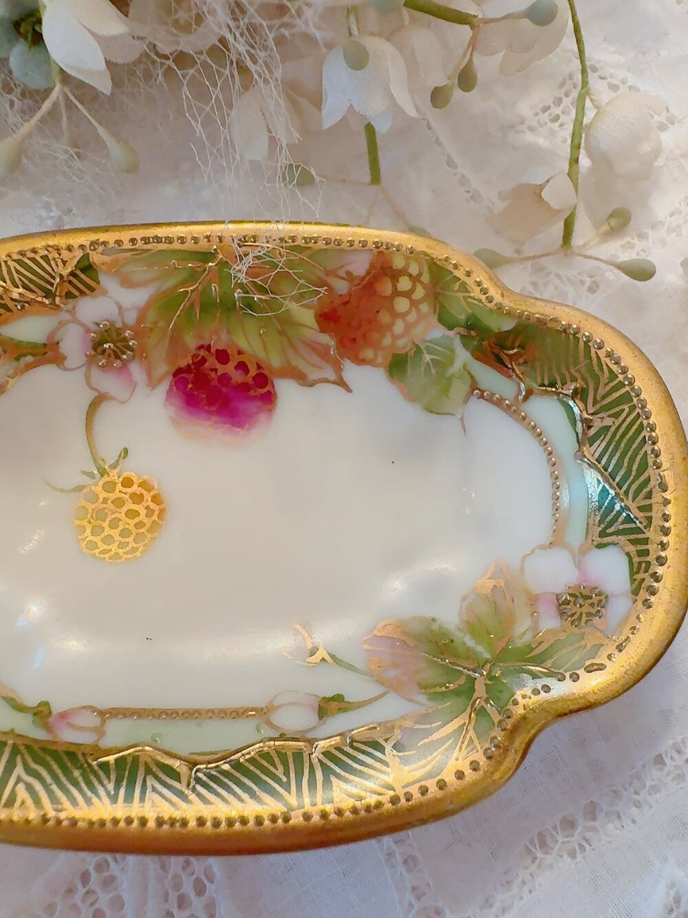 ラズベリー柄と金彩が美しい小皿のご紹介です。