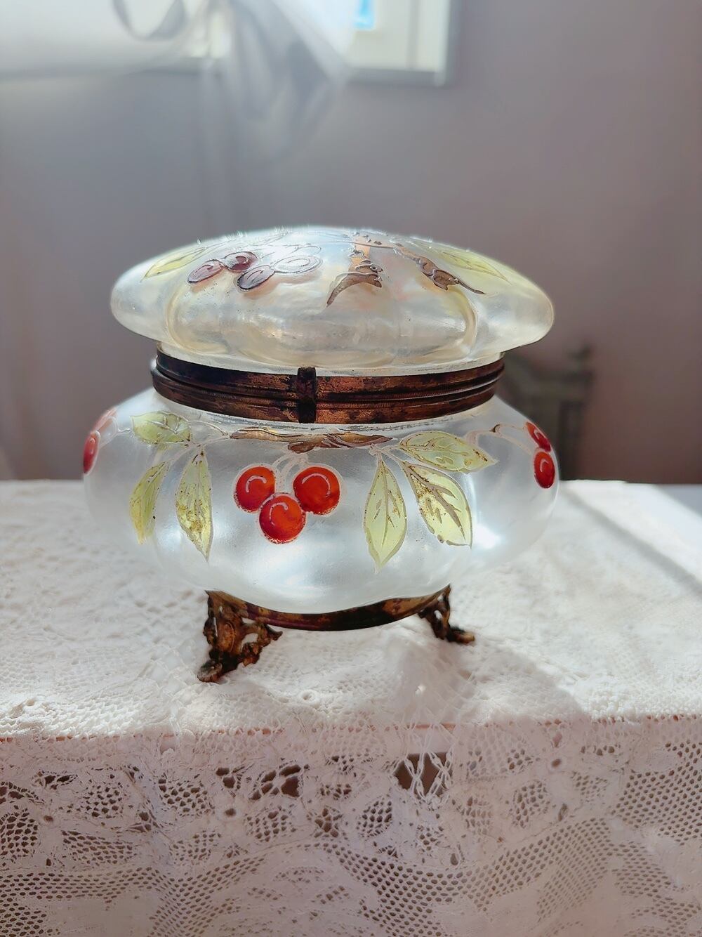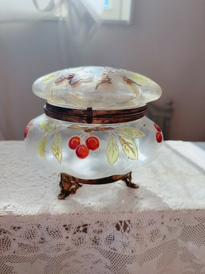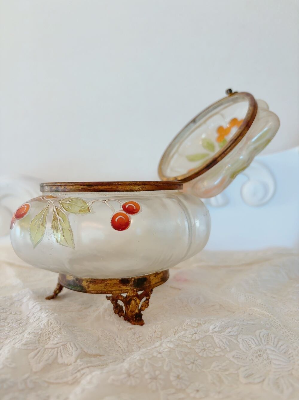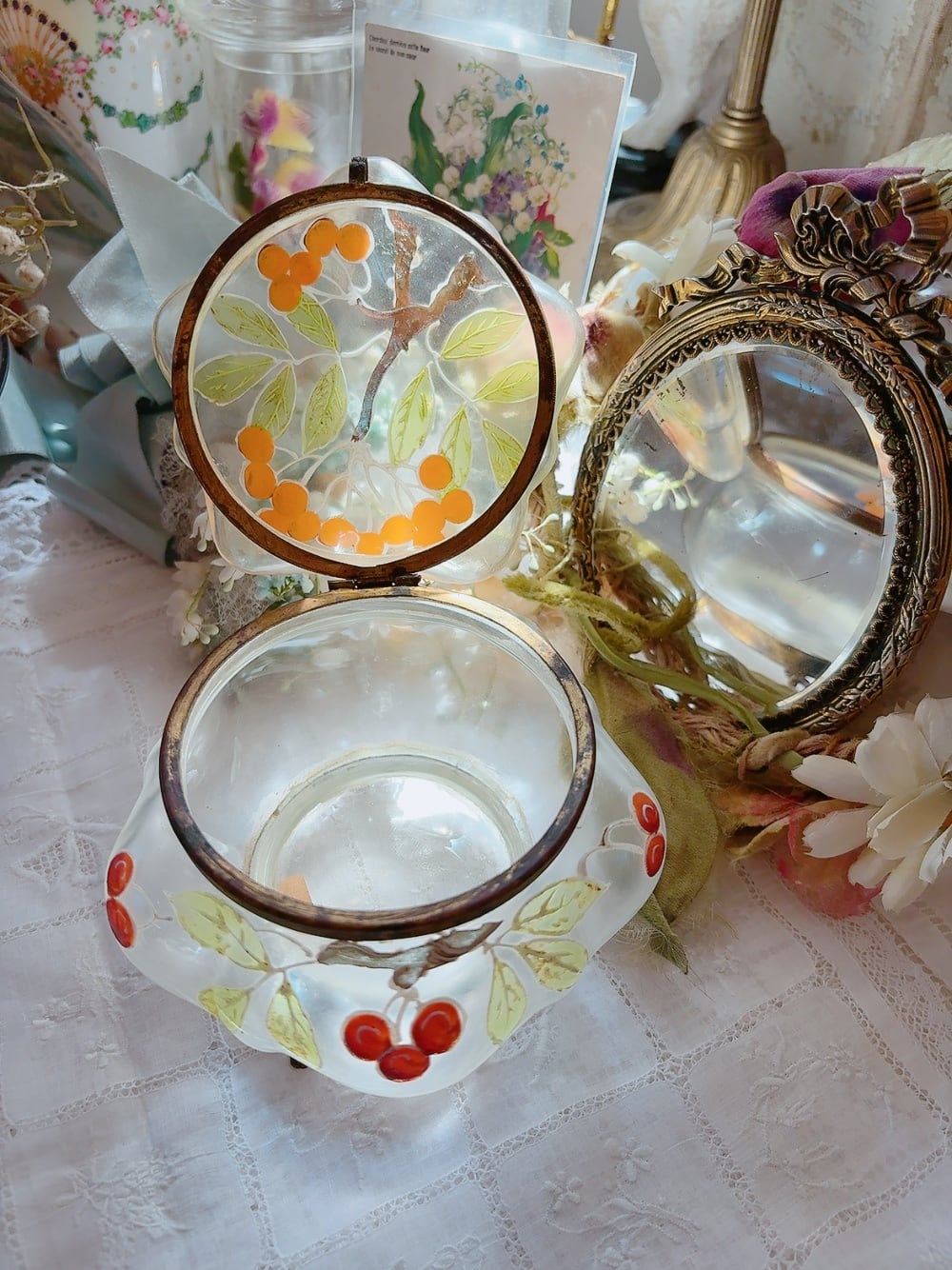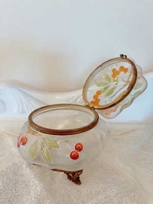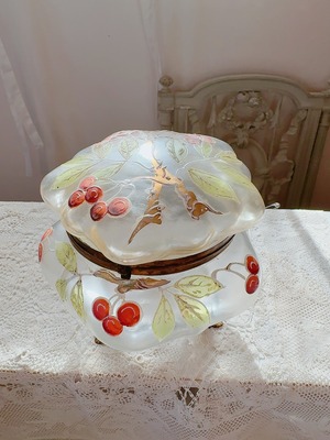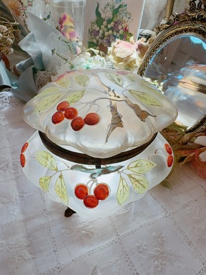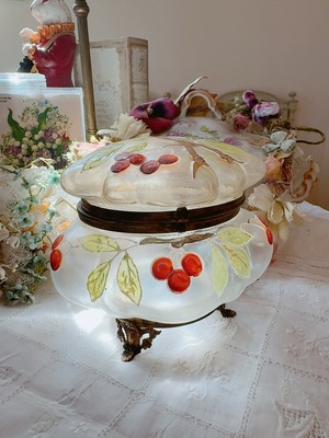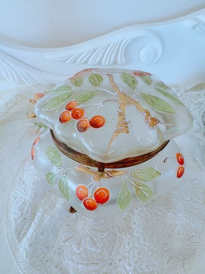 フランスで見つけたフロストガラスさくらんぼ柄の可愛いボンボニエールのご紹介です。