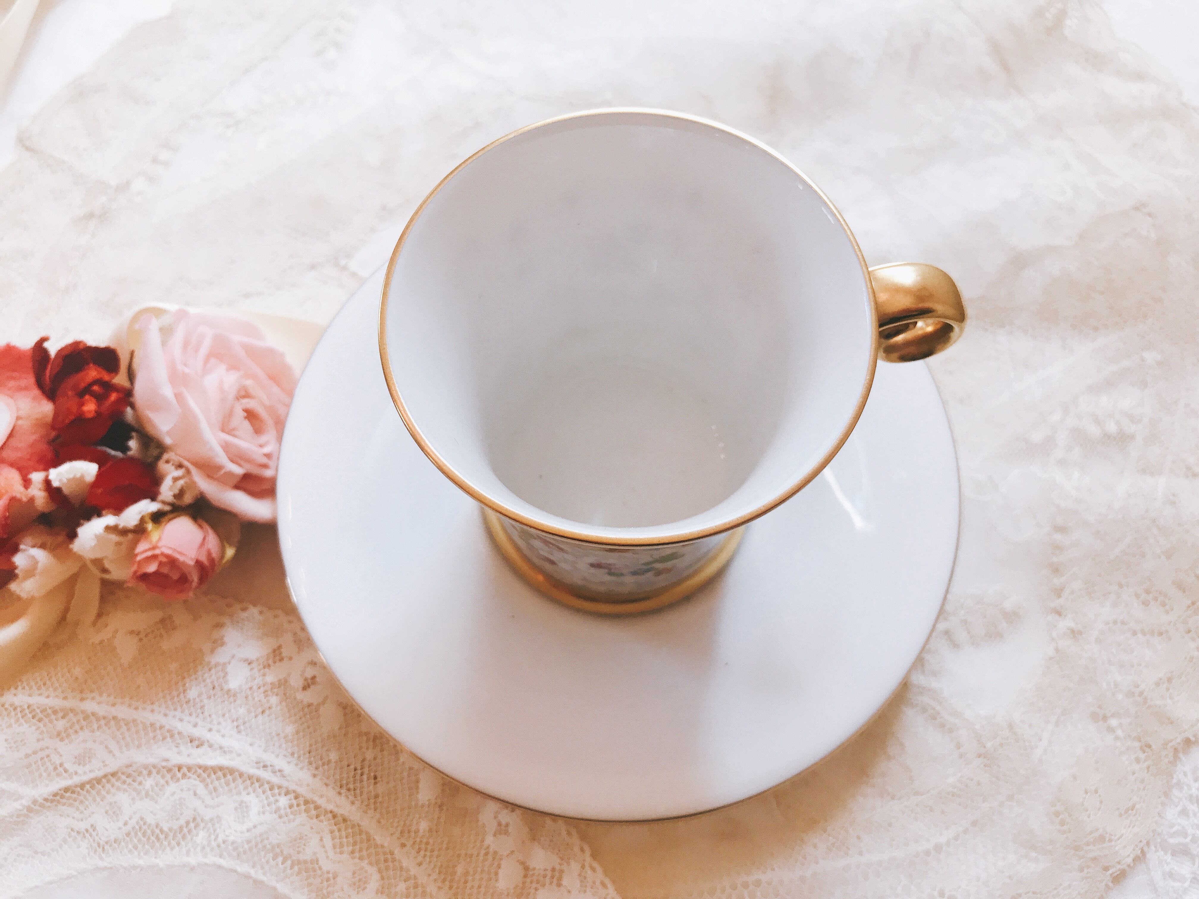 フランスのリヨンで見つけたヘレンドの小薔薇のカップです。ブルー系にピンクの薔薇とブルーの小花がカップとお皿に描かれていて持ち手の形状が可愛く渦を巻いている珍しいカップです。
