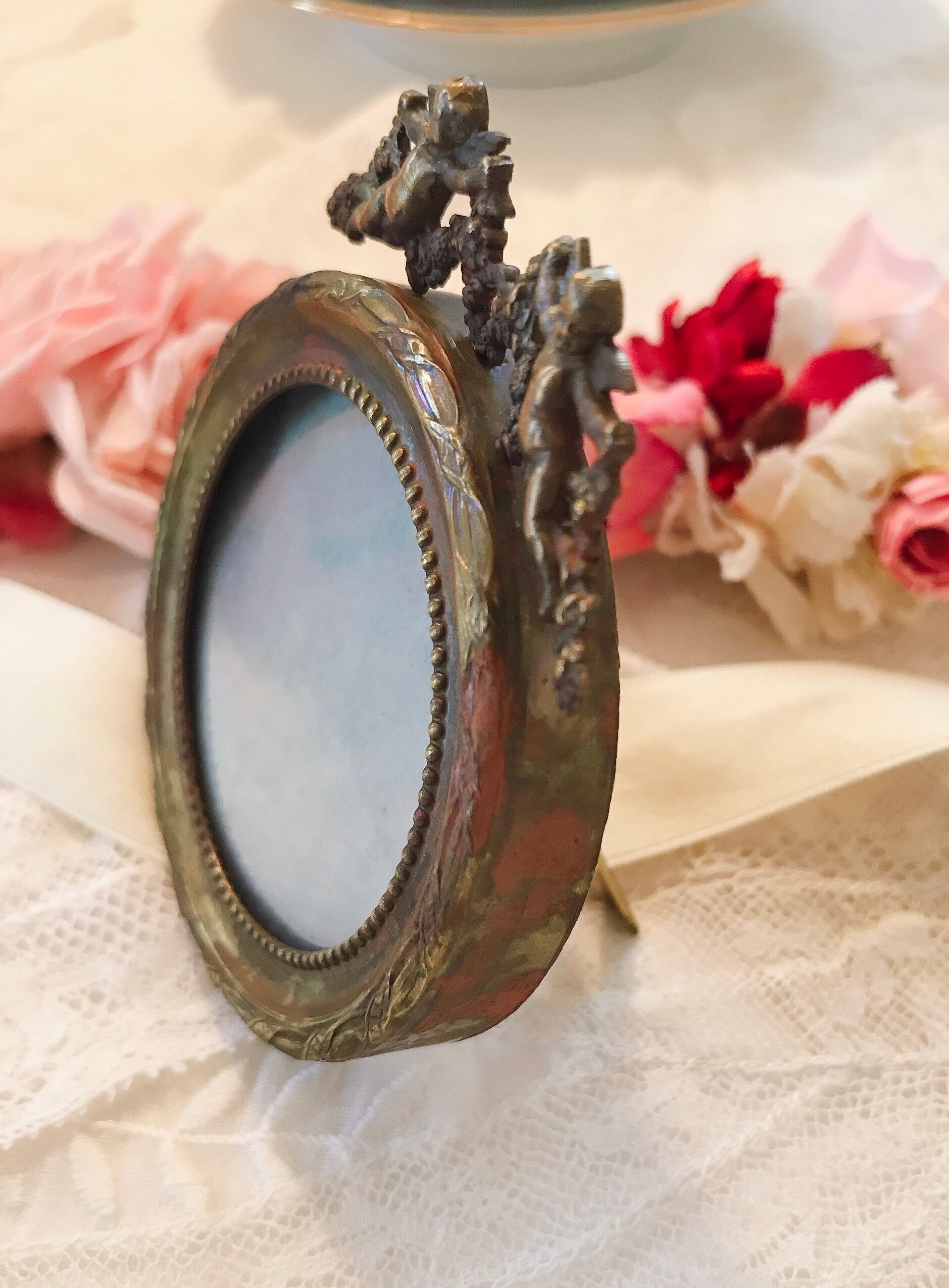 小さめの真鍮のフォトフレームで2人の天使が舞い降りた様なフォトフレームでとても素敵です。