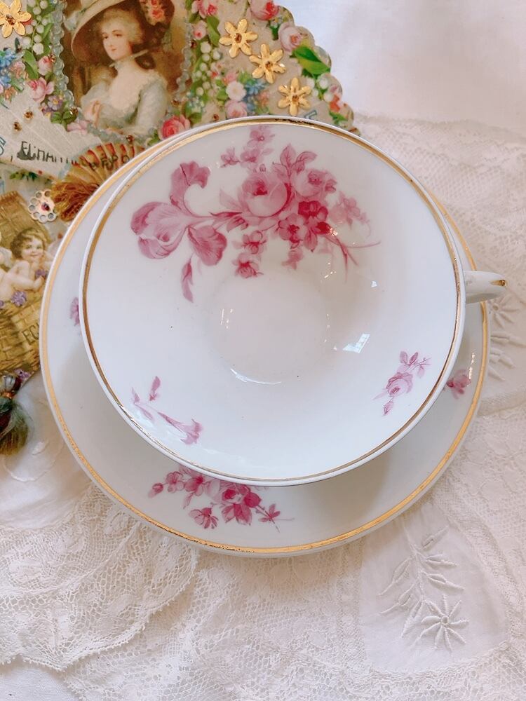 パリで見つけたピンクの薔薇模様が可愛いティーカップです。