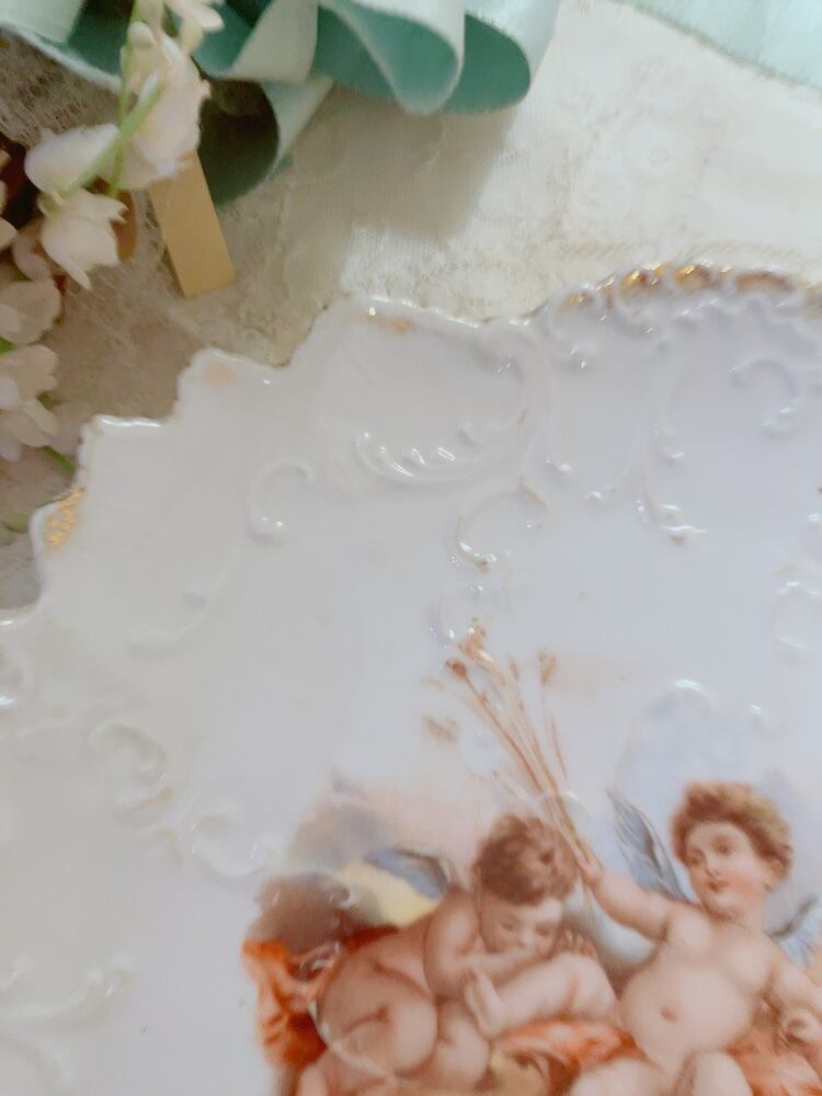 プレートの形状は個性的で天使が戯れる様子が可愛い一品になります