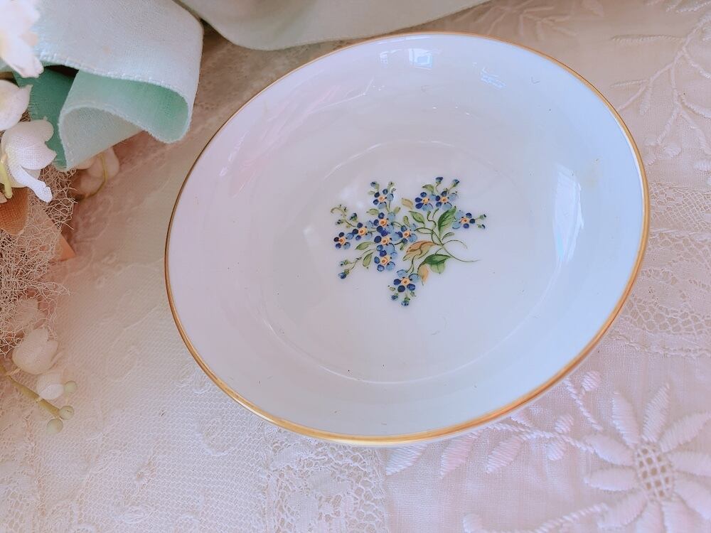繊細で可愛らしい青い小花が描かれたこのプレートは、一瞬で心を和ませてくれます。手のひらに収まるちょうどいいサイズ感で、デザートやおやつを愛らしく盛り付けたり、小さな宝物を飾ったりできます。
