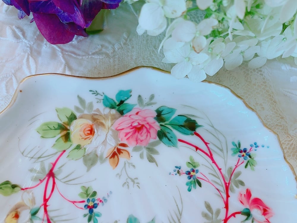こちらのリモージュは生き生きとした薔薇柄で小さいですがとても存在感があります。